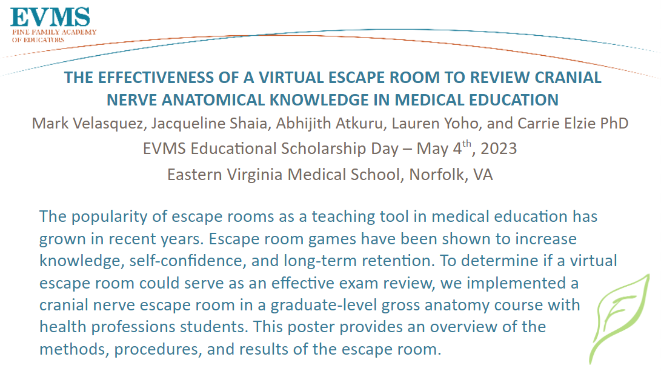 Authors: Mark Velasquez, EVMS MD ’25, Jacqueline Shaia, MS, Lauren Yoho, Abhijith Atkuru, EVMS MD ’24, Carrie Elzie, PhD