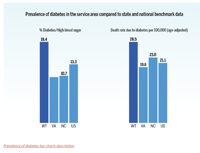 The example below is from a story in EVMS Magazine Issue 14.1, "EVMS project targets diabetes in Western Tidewater." It featured three charts or graphics to highlight the prevalence of diabetes in the Western Tidewater region.