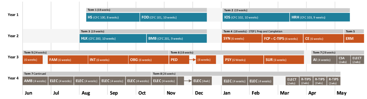 - Accelerated pre-clerkship phase (achieved via refining the sequence and delivery of content)