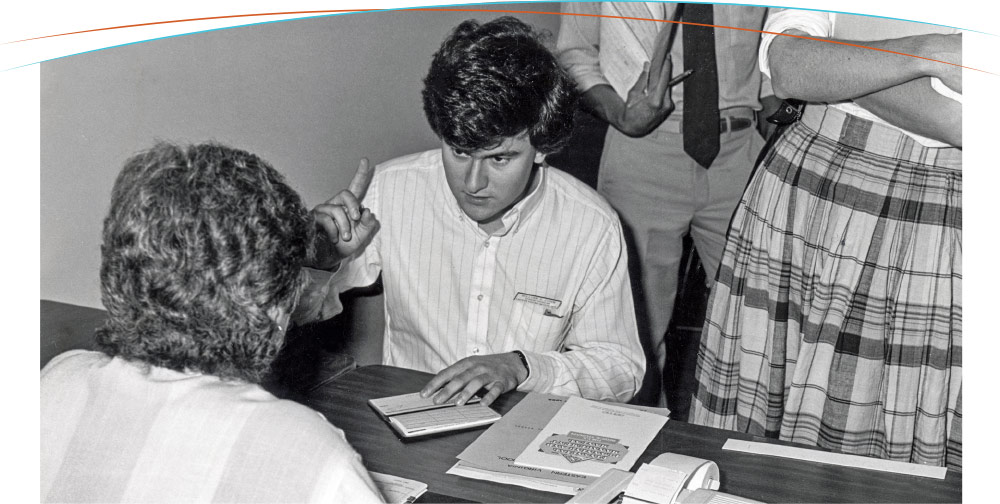 After speaking by radio with an EMT, Brian Allen, MD, a third-year emergency medicine resident, records the critical information so his colleagues can prepare to treat the stabbing victim.